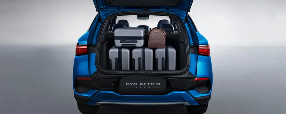 Dragon Face BYD memberi Atto 3 karakter yang kuat dan modern, menghadirkan siluet tegas dengan detail yang memancarkan aura sporty di setiap sisi. Tersedia dalam pilihan warna Cosmos Black, Ski White, Boulder Grey, Forest Green, dan Surf Blue.