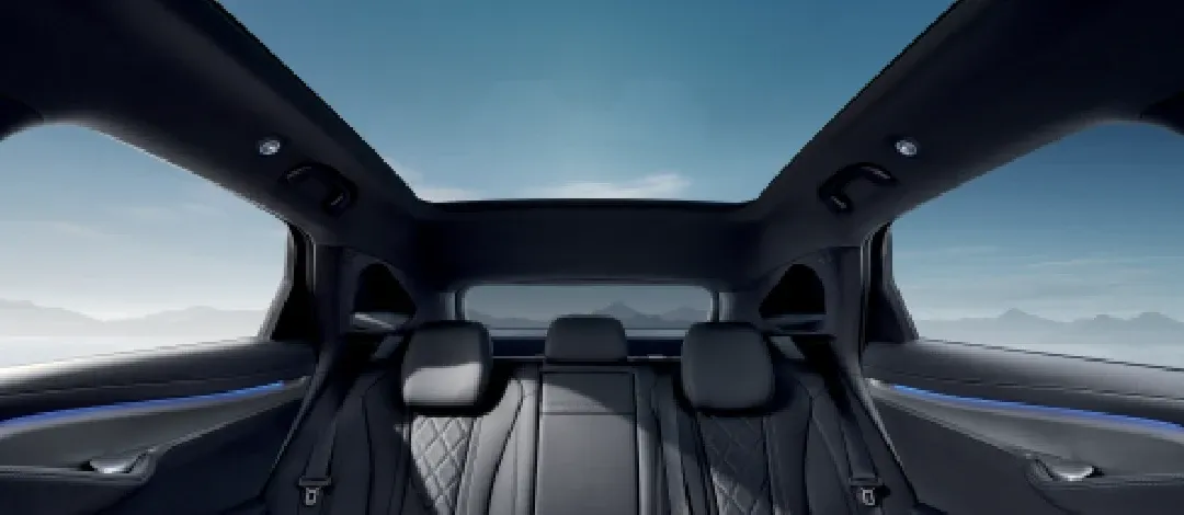 Interior BYD SEALION 7 dirancang dengan sentuhan dinamis, keseimbangan sempurna, dan ruang lapang, menciptakan pengalaman berkendara yang menyatu dan imersif.